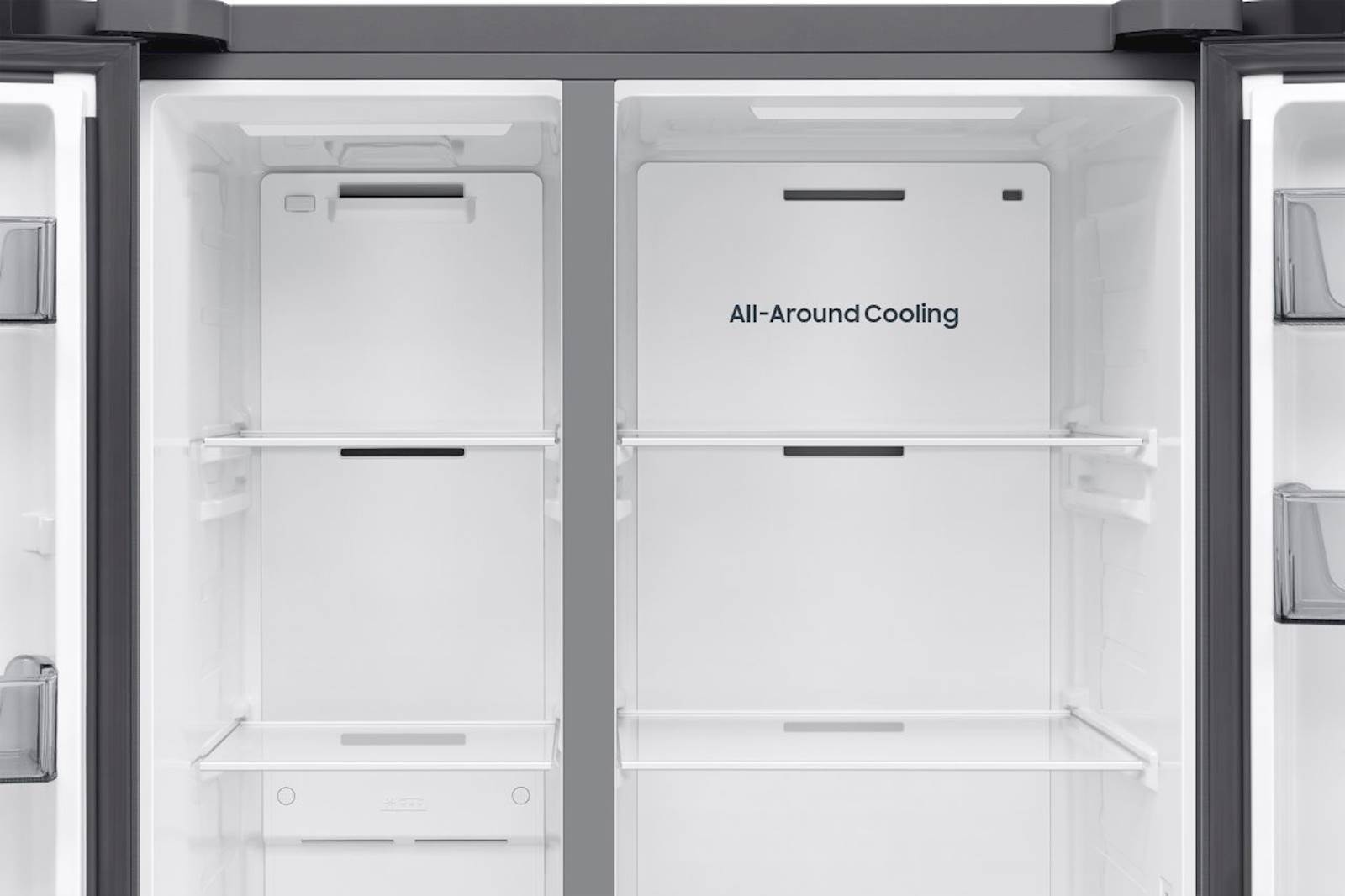 S hladilnikom Samsung RS70F65QETEO lahko privarčujete do 10% energije z načinom AI Energy v SmartThings Energy. Vgrajeni Wi-Fi vam omogoča sledenje in prilagajanje njegovega delovanja z uporabo aplikacije SmartThings. Nadzirate lahko način hlajenja, spreminjate temperaturo in prejemate opozorila, če so vrata odprta. Zaradi SpaceMax™ tehnologije so stene hladilnika veliko tanjše, kar vam omogoča shranjevanje velike količine živil. Hladilnik lahko namestite kamor koli, saj ima 4,5 litrski rezervoar za vodo za svoj razdelilnik za vodo in led. S pritiskom na gumb Power Cool se začne dovajati zelo hladen zrak v hladilnik in tako hitro ohladi vaša živila, Power Freeze poskrbi za hiter dotok mrzlega zraka v zamrzovalnik, kar omogoča hitro zamrzovanje živil in pripravo ledu.