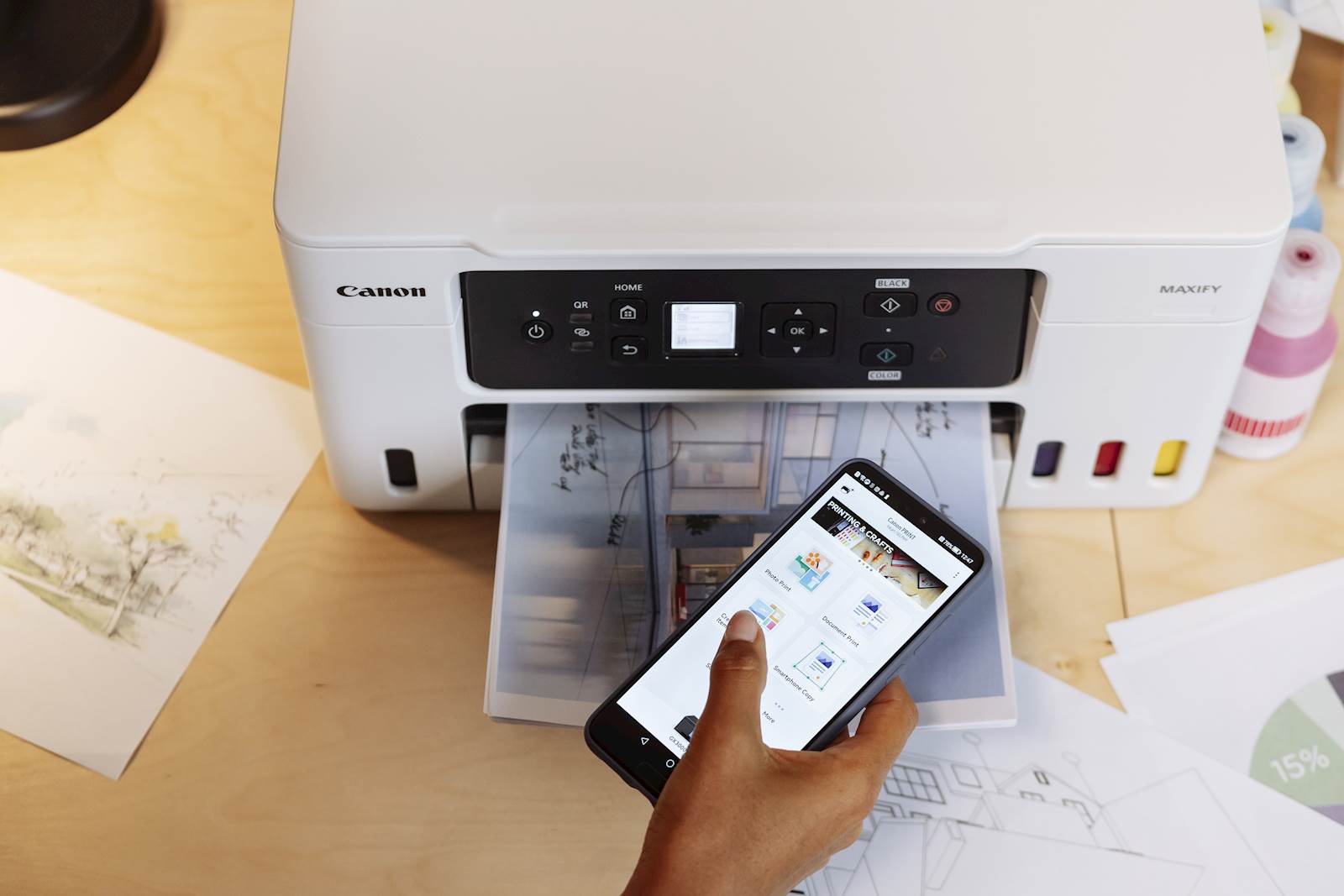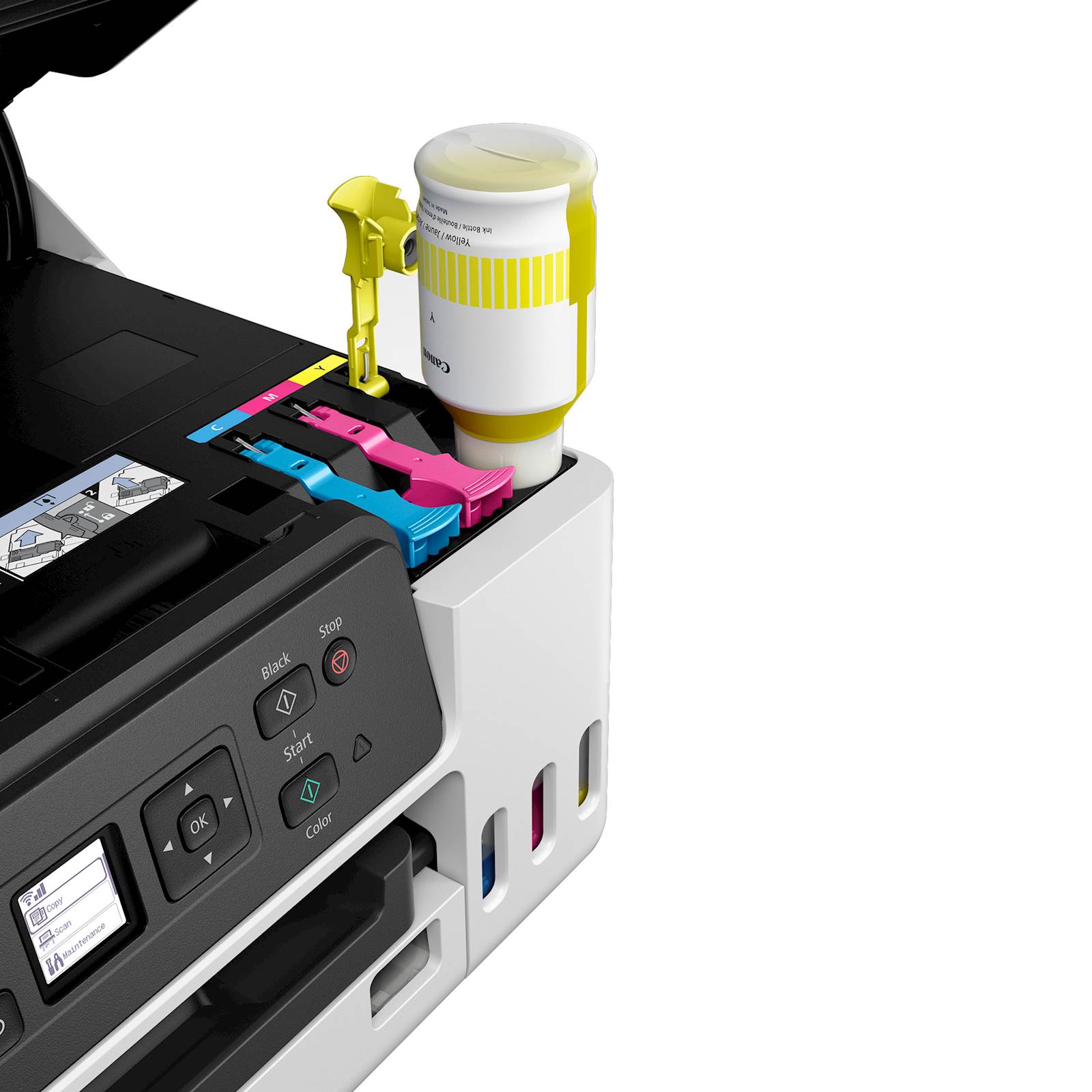 Specifikacije: https://www.canon-europe.com/printers/maxify-gx3040/Specifikacije: https://www.canon-europe.com/printers/maxify-gx3040/specifications/Specifikacije: https://www.canon.si/officepromotion/Tehnologija tiskanja: brizgalni barvni na flaškeTehnologija tiskanja dodatno: , Wi-Fi, Print, Copy, Scan & CloudMaksimalna dimenzija tiskanja: A4Namembnost: poslovna uporabaHitrost tiskanja: do 30 str/minHitrost tiskanja dodatno: 18 strani/minuto Bk, 13 strani/minuto barvnoPovezljivost tiskalnika: USB, WiFiSamodejno obojestransko tiskanje: daLočljivost tiskanja: 600 x 1200 dpiNajvečji priporočen obseg tiskanja: -Možnost faksiranja: neSamodejni podajalnik dokumentov: neObojestransko skeniranje: neStandardna kapaciteta papirja: 1 x 250 listov, podajalec zadaj 100 listov, ročni podajalec 1 list - ravni prehod, do 523g/m2Priložena črnila: , Bk: 6.000 strani, CMY: 5.000 straniDimenzije (Š x V x G): 399 x 417 x 216 mm (Širina x Globina x Višina)Teža: 8,3 kgDodatne informacije: potrošni: GI46; Bk: 6.000, CMY: 14.000 strani izpisov, MC-G03 cca za 10.000 izpisovGarancija v mesecih: 24 + brezplačno podaljšanje garancije na skupno 3 leta oz. 30.000 strani, kar se zgodi prej