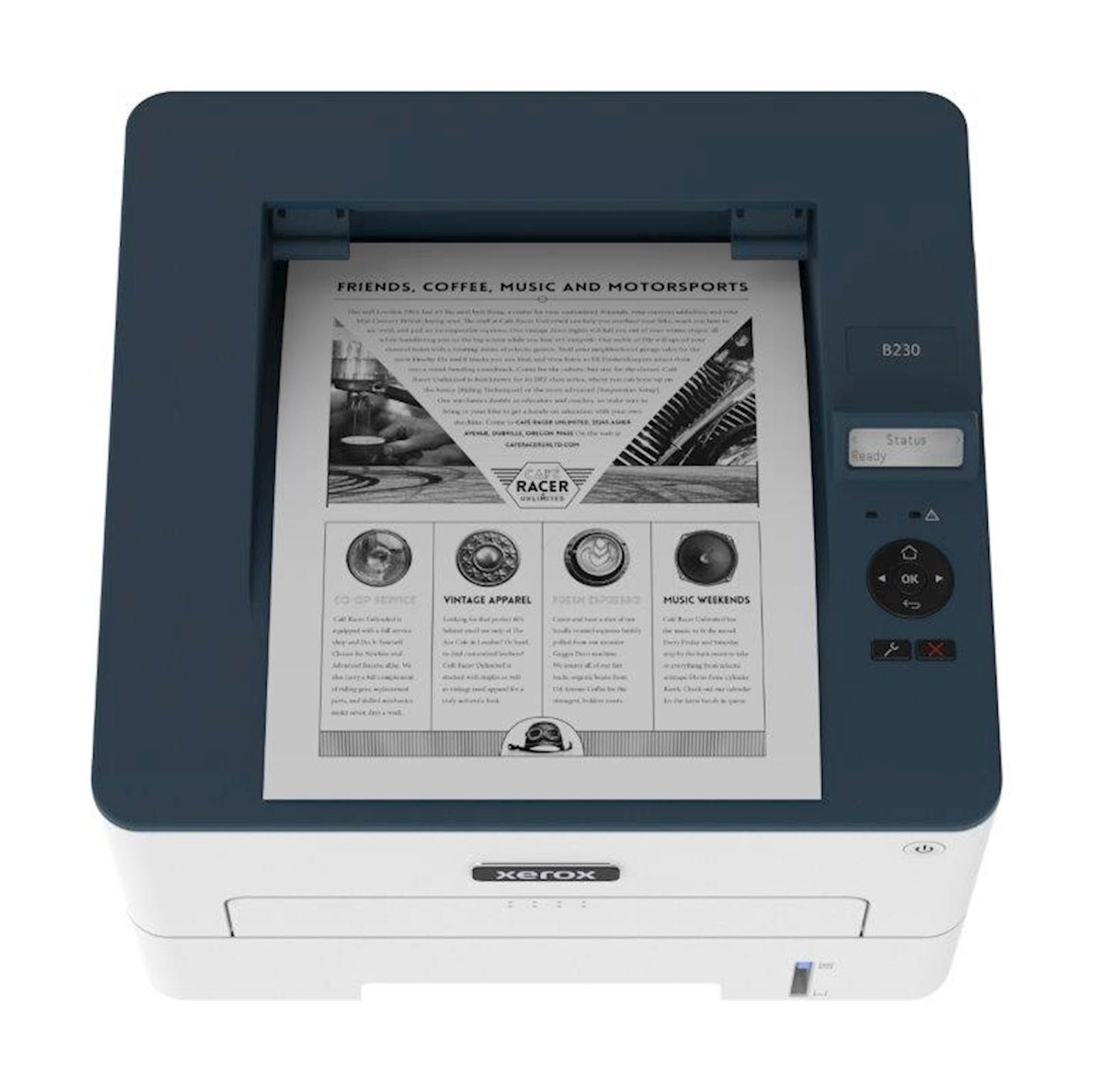 Specifikacije: https://www.office.xerox.com/en-si/printers/xerox-b230-printer/specificationsSpecifikacije: https://www.office.xerox.com/latest/B23BR-011.PDFTehnologija tiskanja: laserski ČBMaksimalna dimenzija tiskanja: A4Namembnost: domača uporaba/mala podjetjaHitrost tiskanja: do 30 str/minHitrost tiskanja dodatno: 34 str/minPovezljivost tiskalnika: USB, Mreža, WiFISamodejno obojestransko tiskanje: daLočljivost tiskanja: do 600 x 600 dpi, 1200 Image QualityNajvečji priporočen obseg tiskanja: do 30.000 strani / mesecStandardna kapaciteta papirja: 1x250 listov, 1 list večnamenski pladenjPriložena črnila: črni toner za 1.200 straniDimenzije (Š x V x G): 355 x 215 x 333 mm Š x V x GTeža: 6,8 kgDodatne informacije: Spomin 256MB, Procesor 1GHz Dual Core, Jezik PCL5/6, PostScript3Garancija v mesecih: 12 pravne osebe, 24 fizične osebe