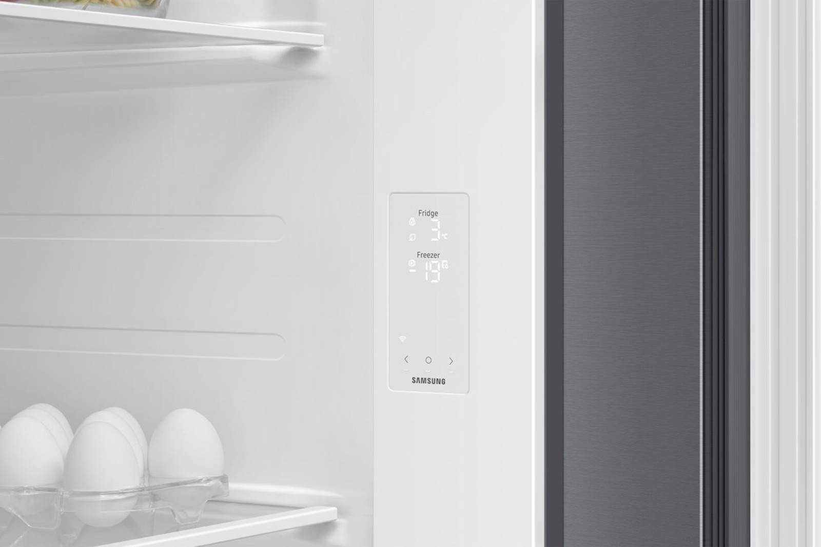 S hladilnikom Samsung RS70F65QETEO lahko privarčujete do 10% energije z načinom AI Energy v SmartThings Energy. Vgrajeni Wi-Fi vam omogoča sledenje in prilagajanje njegovega delovanja z uporabo aplikacije SmartThings. Nadzirate lahko način hlajenja, spreminjate temperaturo in prejemate opozorila, če so vrata odprta. Zaradi SpaceMax™ tehnologije so stene hladilnika veliko tanjše, kar vam omogoča shranjevanje velike količine živil. Hladilnik lahko namestite kamor koli, saj ima 4,5 litrski rezervoar za vodo za svoj razdelilnik za vodo in led. S pritiskom na gumb Power Cool se začne dovajati zelo hladen zrak v hladilnik in tako hitro ohladi vaša živila, Power Freeze poskrbi za hiter dotok mrzlega zraka v zamrzovalnik, kar omogoča hitro zamrzovanje živil in pripravo ledu.