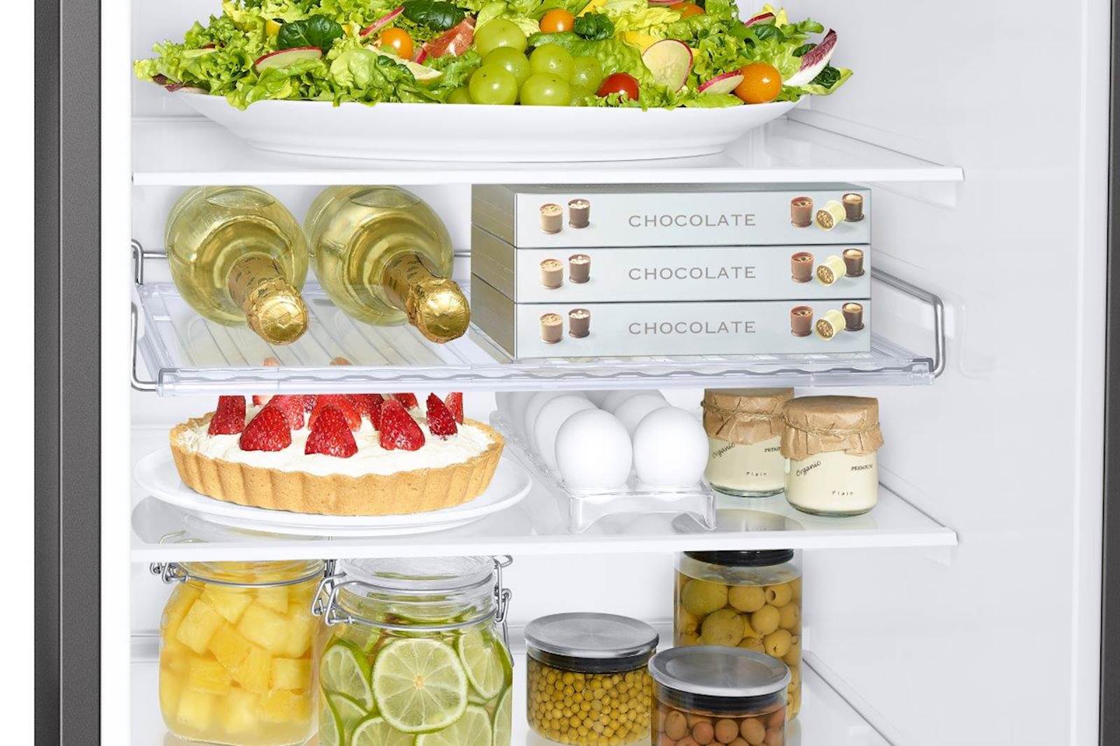Hladilnik Samsung RB34C652ESA/EK je eleganten in zmogljiv kombinirani hladilnik z zamrzovalnikom spodaj, ki združuje napredno tehnologijo, energijsko učinkovitost in prostorsko optimizacijo. Opremljen je s tehnologijo SpaceMax, ki omogoča več notranjega prostora brez povečanja zunanjih mer, medtem ko sistem All-Around Cooling skrbi za enakomerno hlajenje vseh delov hladilnika. Funkciji Power Cool in Power Freeze poskrbita za hitro ohlajevanje in zamrzovanje – idealno za hitro hlajenje pijač ali hitrejše shranjevanje sveže hrane. Digitalni inverter kompresor zagotavlja tišje delovanje, manjšo porabo energije in daljšo življenjsko dobo. Sodobna kovinsko srebrna zunanjost z ravnimi linijami in zasnovo Clean Back se odlično prilega vsaki kuhinji, obenem pa omogoča enostavno čiščenje in vzdrževanje.