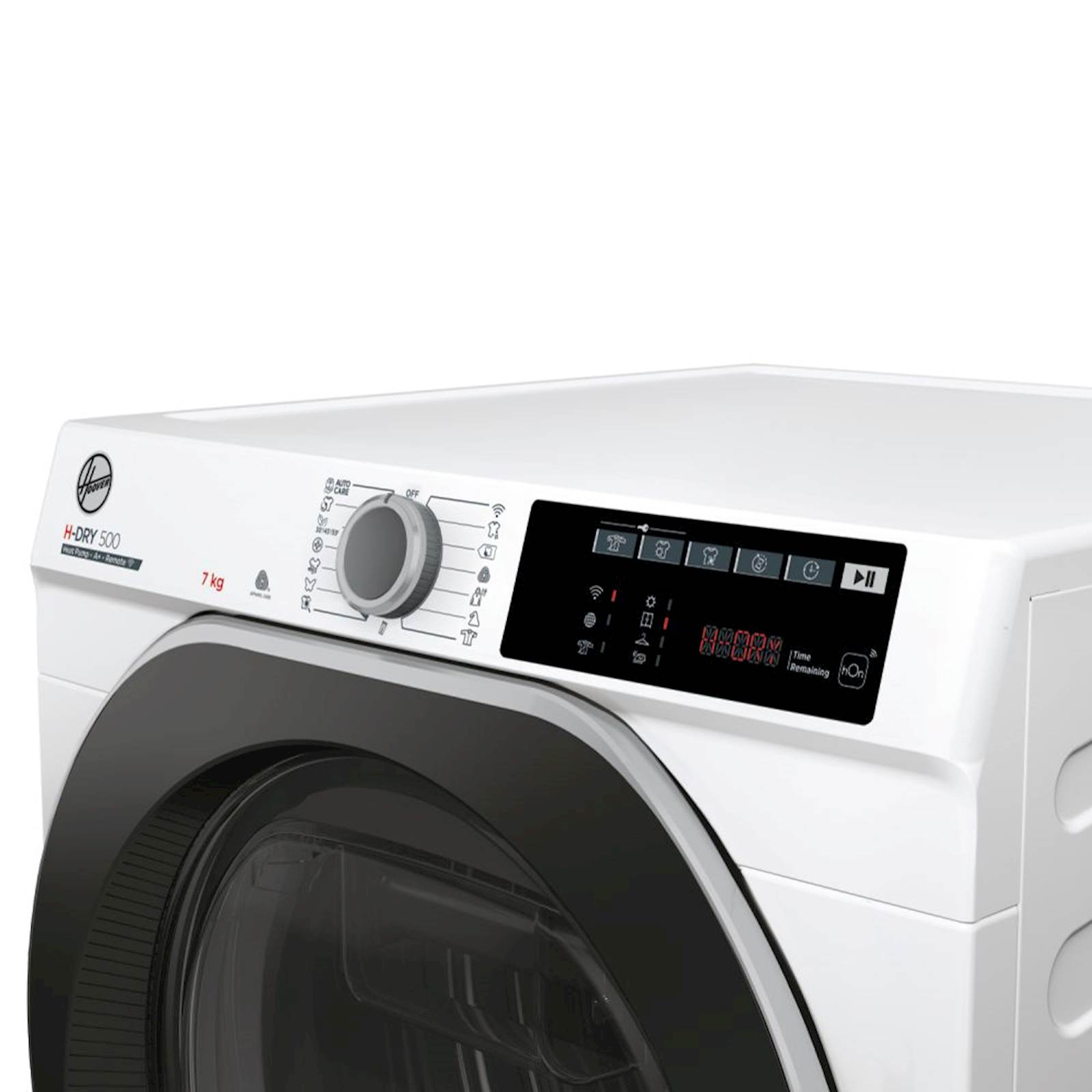 Odkrijte nov najplitkejši sušilni stroj Hoover iz linije H-DRY 500 Essential – ND4 H7 A1 TSBEX-S. Z zmogljivostjo sušenja do 7 kg in 16 različnimi programi sušilni stroj z lahkoto izpolni vsa vaša pričakovanja. Poleg klasičnega načina upravljanja ima na voljo upravljanje preko aplikacije hOn, ta ponuja več kot 20 dodatnih programov, za vse vrste tkanin ter ekskluzivno funkcijo Scan to Care, s katero lahko ustvarite svojo virtualno garderobo, aplikacija pa predlaga najprimernejši program za nego vaših oblačil. Priročna posoda za zbiranje vode na vratih je ergonomsko oblikovana za lažje odlivanje. Hoover ponuja možnost podaljšanja jamstva na skupno 5 let, z registracijo v 30 dneh od nakupa. Registrirajte svoj aparat na spletni strani: https://www.hoover-home.com/sl_SI/podaljsanje-garancije/.