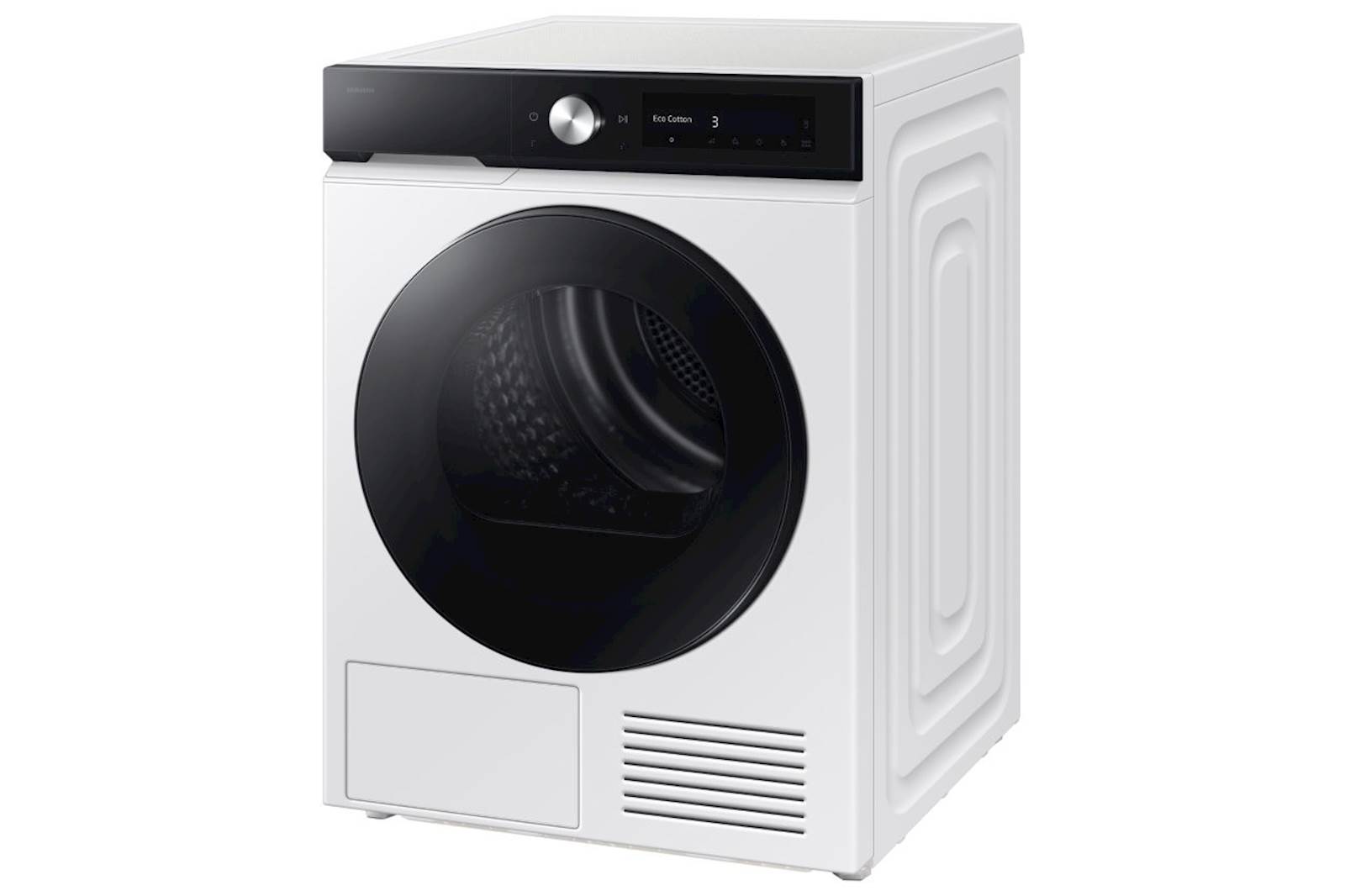Sušilni stroj Samsung DV90DB7845GEU4 je sodoben kondenzacijski sušilni stroj z zmogljivostjo 9 kg. Napredna funkcija AI Dry samodejno prilagodi nastavitve sušenja glede na vrsto tkanine in količino vlage, medtem ko QuickDrive omogoča hitrejše sušenje brez kompromisov pri kakovosti. Združljiv je s pametno aplikacijo SmartThings, ki omogoča daljinsko upravljanje, spremljanje porabe energije in diagnostiko napak. Med pomembnimi funkcijami je zaščita pred mečkanjem perila, notranja osvetlitev bobna ter možnost spremembe smeri odpiranja vrat.