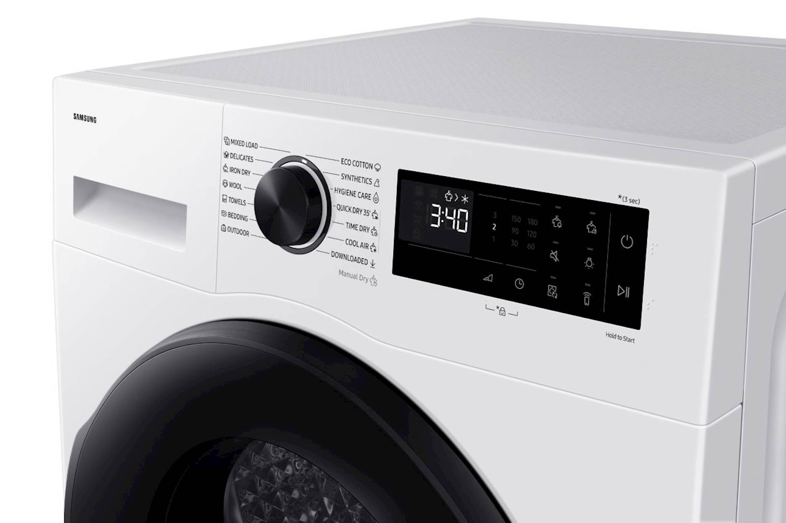 Samsung DV90DG52A0AELE je napreden sušilni stroj s tehnologijo toplotne črpalke. Primeren je za večje gospodinjstvo, saj poleg varčnega delovanja ponuja tudi številne pametne funkcije za preprosto uporabo. Vgrajena tehnologija OptimalDry uporablja senzorje za vlago in temperaturo, s čimer optimizira sušenje glede na vrsto perila in preprečuje poškodbe tkanin. S funkcijo QuickDry lahko hitro posušite manjšo količino oblačil v le 35 minutah, SmartThings povezljivost pa omogoča enostavno upravljanje in spremljan je delovanja na daljavo prek pametnega telefona. Funkcija Wrinkle Prevent zmanjša mečkanje perila po koncu cikla, notranja osvetlitev bobna pa poskrbi za boljši pregled nad sušenjem.