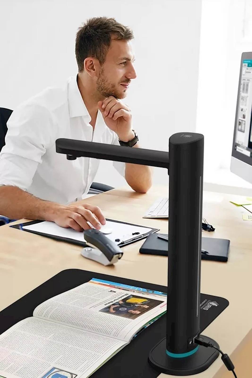 IRIScan™ Desk 6 Business je profesionalni in vsestranski optični čitalec za dokumente z podporo za izobraževanje na daljavo. Opremljen je z umetno inteligenco (AI) za odstranjevanje prstov, zaznavanje obračanja strani in izravnavanje ukrivljenosti knjig. Hitro skeniranje knjig, revij in dokumentov do velikosti A3 (11x17 in) s hitrostjo 1 sekunda na stran. Funkcija prepoznavanja 1D in 2D črtnih kod omogoča sledenje dokumentov ter izvoz podatkov skupaj s sliko. Programska oprema IRIScan Desk pretvori skenirane dokumente v iskalne PDF-je, Word, Excel, MP3 in WAV zvočne datoteke. Dvojna leča z ločljivostjo do 32 MP in vgrajeni mikrofon omogočata ustvarjanje spletnih vadnic, videoposnetkov in predstavitev v HD kakovosti. Idealen za dislektike z napredno funkcijo branja besedila (Text To Speech), ki omogoča branje in poslušanje besedil. Združljiv z Zoom, Teams, Skype in Google za izboljšano izkušnjo dela na daljavo. Vključuje brezplačno produktivno programsko opremo: Cardiris, Readiris in IRISmart File za obdelavo vizitk, prepoznavanje besedil in samodejno arhiviranje dokumentov. Priročna funkcija samodejnega fotografiranja za skeniranje velikih količin dokumentov brez prekinitev.