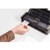Ta prenosni optični bralnik z vgrajeno baterijo in brezžično povezljivostjo omogoča optično branje od koder koli. Optični bralnik DS-360W s svojo lahko in kompaktno zasnovo poenostavlja hitro in učinkovito optično branje dokumentov, ko ste na poti. Na poti ga lahko celo polnite prek kabla USB. Ker ponuja največjo hitrost na tržišču, 25 strani na minuto1, je spopadanje s papirologijo povsem enostavno.