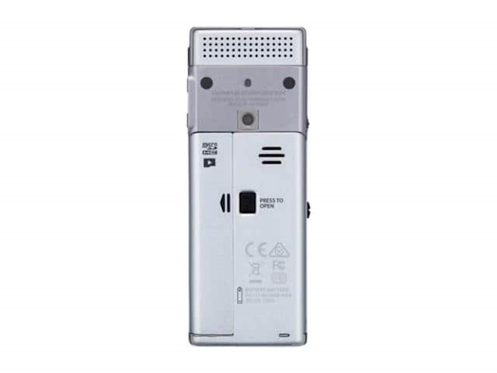 - Specifikacije: https://www.olympus.si/site/en/a/audio_systems/audio_recording/high_end_recorders/dm_720/index.htmlTip mikrofona: TrismerniVrsta diktafona: Poslovni Samodejno snemanja: DaSamodejno snemanja dodatno: VCVA - vklop snemanja ob zaznavi glasuVelikost notranjega spomina: 4 GBFormat zapisa: PCM in MP3, predvaja PCM (WAV) in MP3Čas snemanja: 985hŠtevilo map s posnetki: 5 map do 200 posnetkovSpominka kartica: Micro SD/SDHC kartica ni priloženaBaterija: BR404 polnilna Ni-MH baterijaVsebina škatle: diktafon, baterija, stojalo-sponka.Mere (Š x V x G): 105,9 x 39,6 x 141,4 mmTeža: 72 gDodatne informacije: Funkcija: glasovno vodenje-primerna za slepe (na voljo v jezikih: EN, FR, DE, ES, IT, RU, SV)Garancija v mesecih: 24
