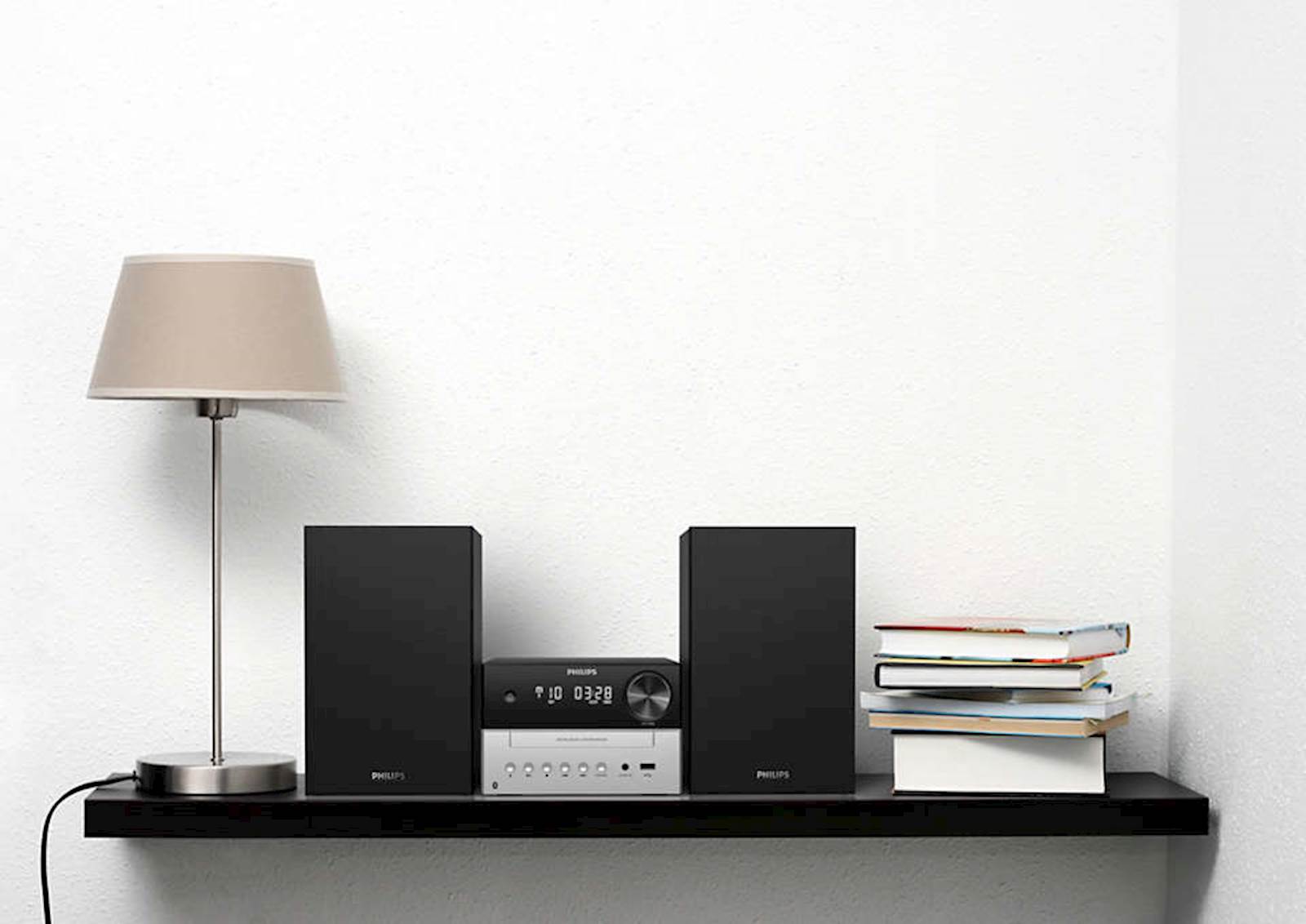Uživajte v boljšem zvoku pretakanih podcastov in seznamov predvajanj. Na novo odkrijte zbirko svojo CD-jev ali nastavite na radio. Ta mikro sistem klasičnega videza zagotavlja odličen zvok v manjših prostorih, prek vhoda USB in avdio vhoda pa lahko priklopite druge vire.