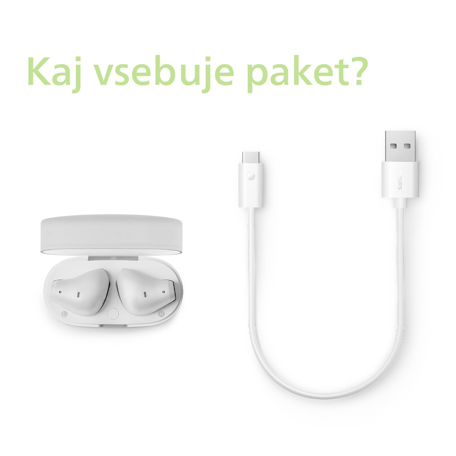 Občutite glasbo, ne slušalk Brez ušesnih blazinic in z izjemno majhnim polnilnim etuijem lahko s temi lahkimi slušalkami udobno uživate v glasbi, kamorkoli greste. Dynamic Bass poskrbi za globlje base pri nižjih glasnostih, upravljalne gumbe na dotik pa lahko prilagajate.